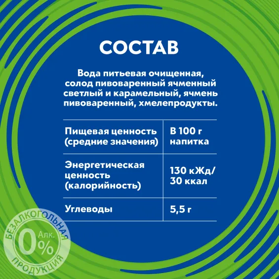 Освежающий светлый безалкогольный фильтрованный классический лагер со сбалансированным вкусом и подробнееОсвежающий светлый безалкогольный фильтрованный классический лагер со сбалансированным вкусом и легкими нотами фруктов в аромате. Солодовый напиток с хлебным оттенком, приятной сладостью и заметной хмелевой горечью