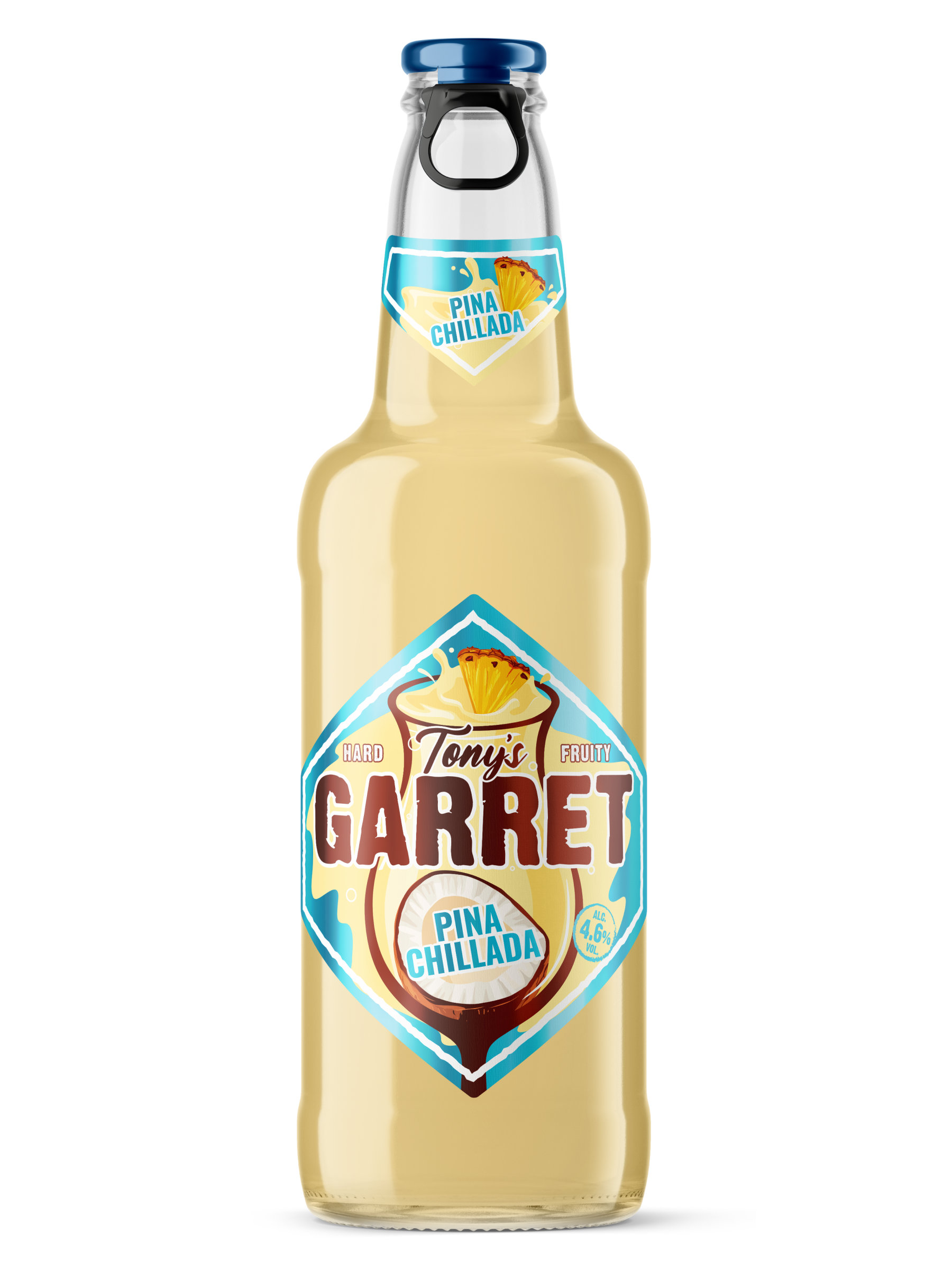 вода питьевая очищенная, солод пивоваренный ячменный светлый, сахар, ароматизатор пищевой эмульсионный «Ваниль» (стабилизаторы: E414, E444, E445, регулятор кислотности Е330, консерванты: Е202, Е211), регулятор кислотности кислота лимонная, ароматизатор пищевой «тип Пина Колада», ароматизатор пищевой «Ананас», сок концентрированный из ананаса, хмелепродукты.